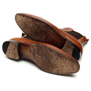 Carlos Santos '778' Chelsea boots in tan brown burnished calf. In excellent used condition, showing minor signs of wear.