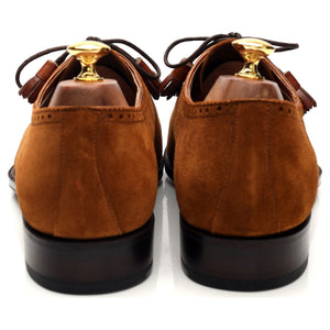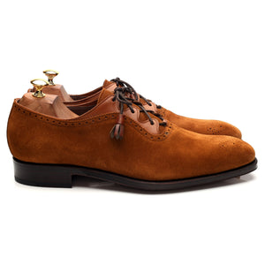 Carmina '80516' ghillie adelaide in tobacco suede and tanned vocalou calf.