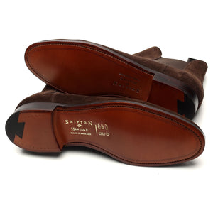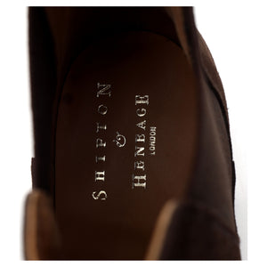 Crockett & Jones manufactured for Shipton & Heneage 'Bingham' Chelsea boots in dark brown suede.