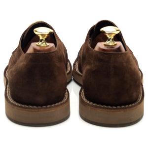 Brunello Cucinelli cap toe derby inbrown suede. In excellent used condition, showing minor signs of wear.
