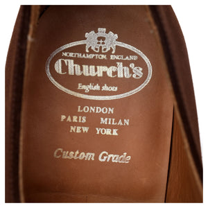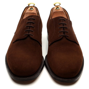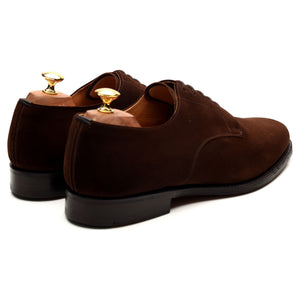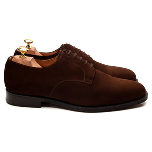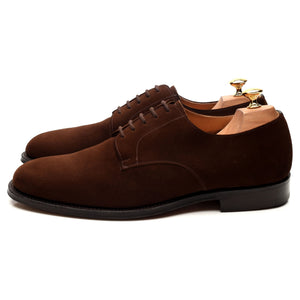 Church's 'Cranfield' plain toe derby in brown suede. In excellent used condition.