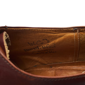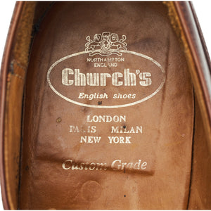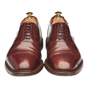 Church's 'Lancaster' cap toe oxford in brown polished calf. In very good used condition, showing moderate signs of wear.