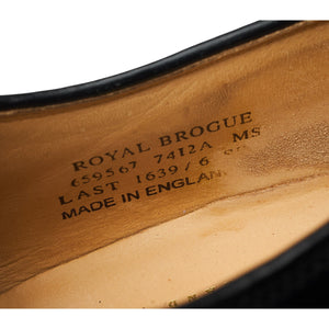 Loake 'Royal Brogue' wingtip derby brogue in black polished calf. In very good used condition, showing moderate signs of wear.