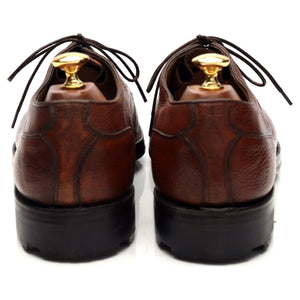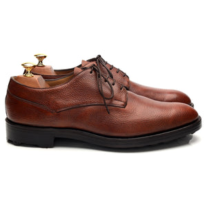 Edward Green manufactured for Guerresco Cortina plain toe derby in tan brown grain antique calf. In excellent used condition, showing minor signs of wear.