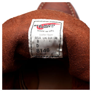 Red Wing '8146' moc-toe boots in 'Oro Legacy' tan brown leather. In excellent used condition, showing minor signs of wear.