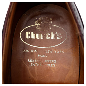 Church's wingtip oxford brogues in burgundy calf. In excellent used condition, showing minor signs of wear.