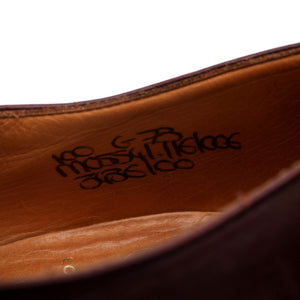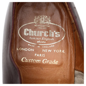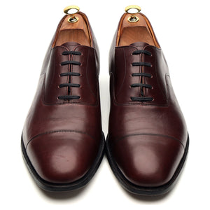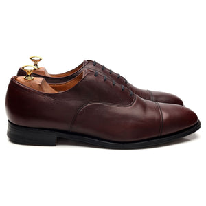 Church's cap toe oxford in burgundy calf. In excellent used condition, showing minor signs of wear.