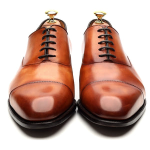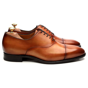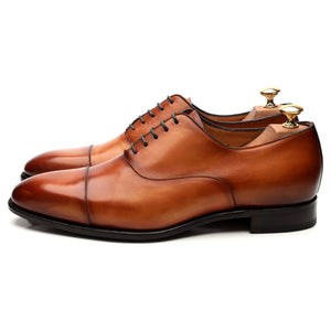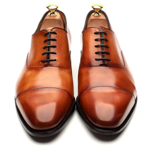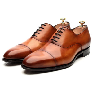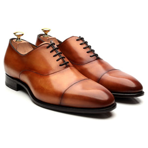 Carlos Santos 'Harold' cap toe oxford in hand-painted tan brown calf.
