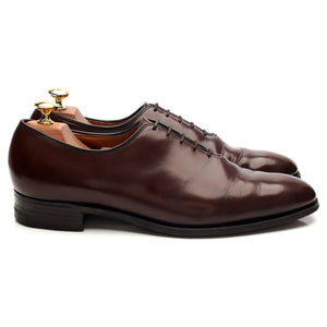 Church's manufactured for Alan McAfee wholecut oxford in dark brown polished calf. In very good used condition, showing moderate signs of wear and with creasing across the vamps.