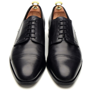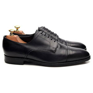 John Lobb manufactured for Hermes 'Harry' cap toe derby in dark navy blue calf. In excellent used condition, showing minor signs of wear.