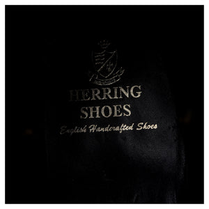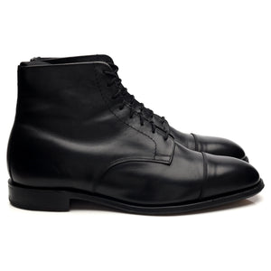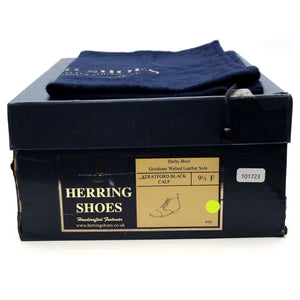 Loake manufactured for Herring 'Stratford' cap toe derby boots in black calf. In excellent used condition, showing minor signs of wear.