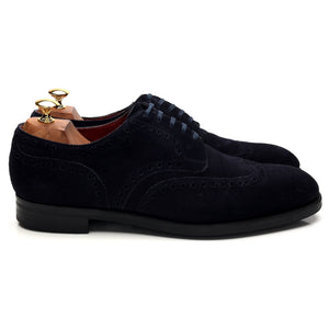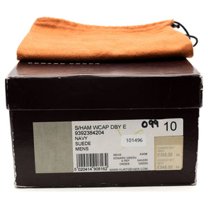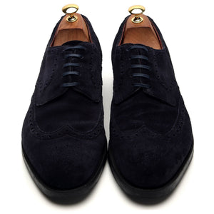 Edward Green manufactured for Kurt Geiger 'Sandringham' derby brogue in navy blue suede. In excellent used condition showing minor signs of wear.