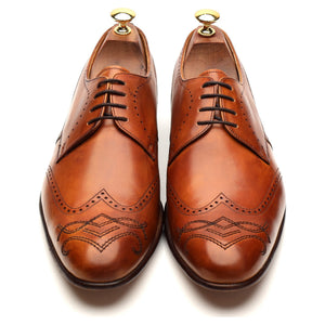 Barker derby wingtip semi brogues in 'cedar' tan brown calf. In excellent used condition.
