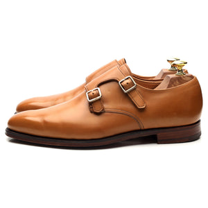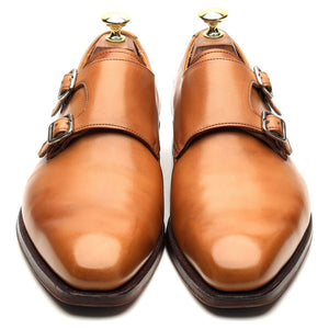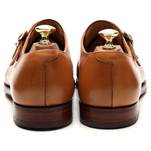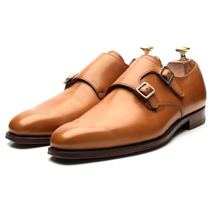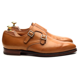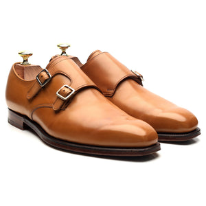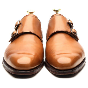 Crockett & Jones manufactured for Rose & Born double monk strap in tan brown 'beige' calf. In excellent used condition, with minor signs of wear.