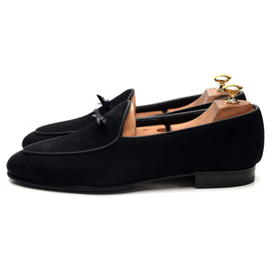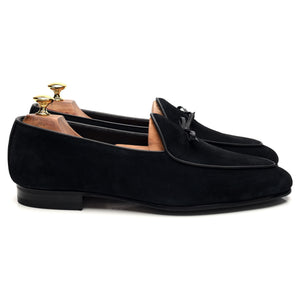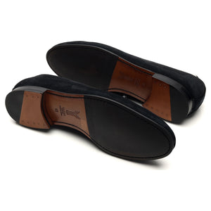 Yanko '5424' classic unlined Belgian loafer in black reverse kudu suede.