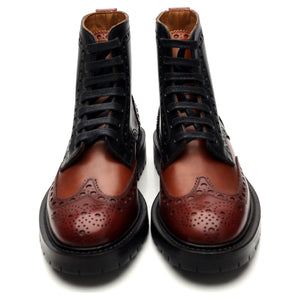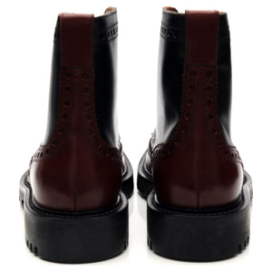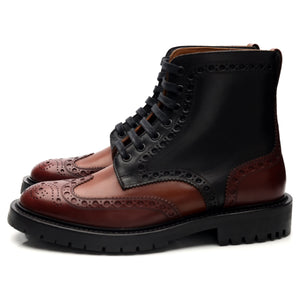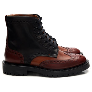 Burberry 'Barkston' brogue boots in multi-coloured black, brown and tan polished calf.