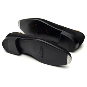 J. FitzPatrick 'Meridian' butterfly loafer in black suede. In excellent used condition.