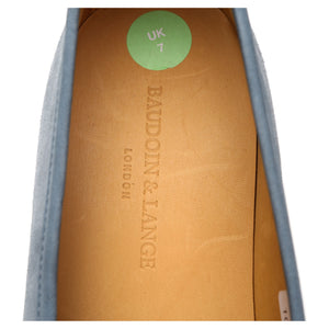 Baudoin & Lange 'Sagan Stride' slip on loafer in blue suede. In excellent condition,