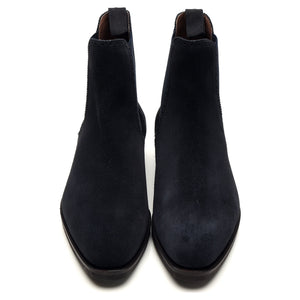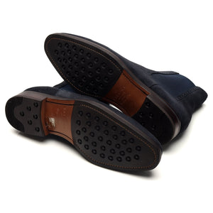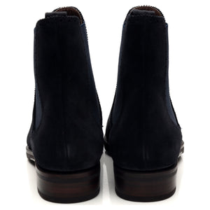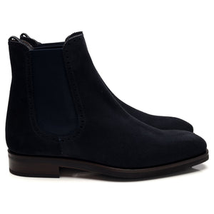 Carmina '80409' Chelsea boots, with broguing, in navy blue 'Marino' suede.