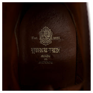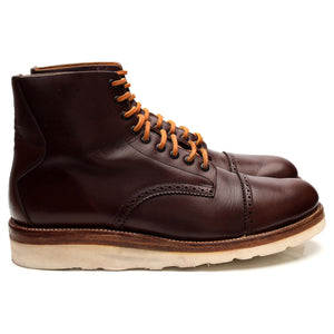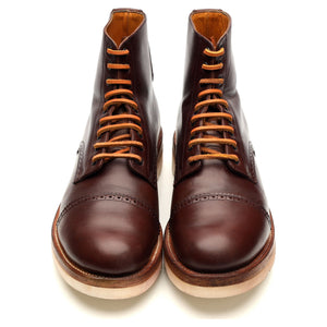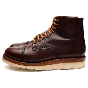 Yuketen 'Johnson' cap toe derby boots in brown leather. In excellent used condition.