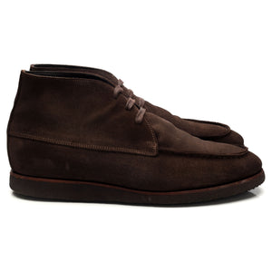 Anglo-Italian Alpine boots in dark brown suede. In very good used condition, showing moderate signs of wear.