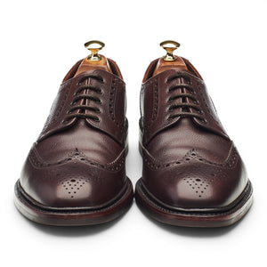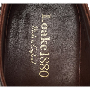 Loake 1880 'Badminton 2' wingtip derby brogues in dark brown grain calf. In excellent used condition, showing minor signs of wear.