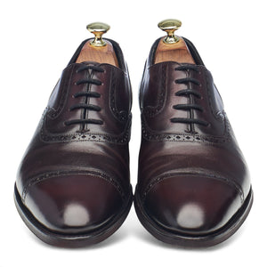 Gaziano & Girling 'St. Ives' cap toe oxford semi brogues in burgundy 'Dark Margaux' patina calf. In excellent used condition, showing minor signs of wear.