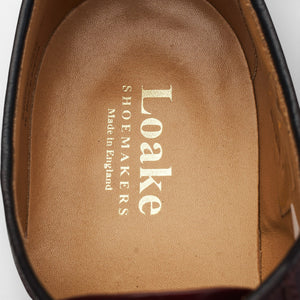 Loake '771' plain toe derby in burgundy polished calf. In excellent used condition, showing minor signs of wear.