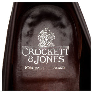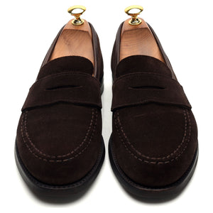 Crockett & Jones 'Harvard 2' unlined penny loafer in dark brown Repello suede. In excellent used condition, showing minor signs of wear.