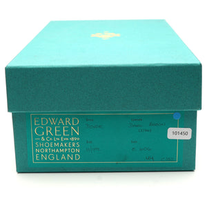 Edward Green 'Dover' apron front split toe derby in dark brown Utah grain calf. In very good used condition, showing moderate signs of wear.