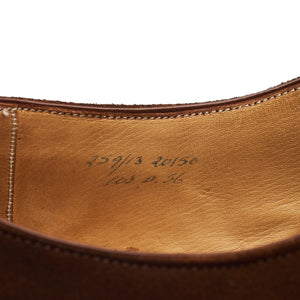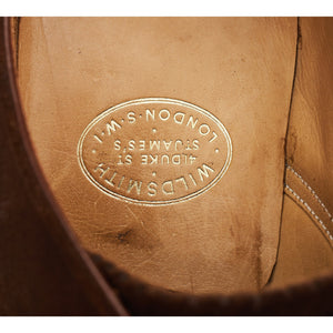 Edward Green manufactured for Wildsmithplain toe derby in dark brown suede. In excellent used condition, showing minor signs of wear.