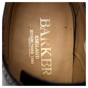 Barker 'Perth' cap toe derby brogues in burgundy polished calf. In excellent used condition, showing minor signs of wear.