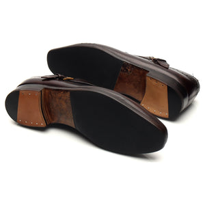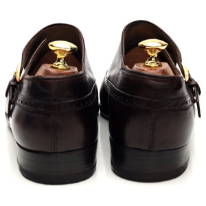 Berluti monk straps in dark brown patina calf. In very good used condition, with moderate signs of wear and creasing across the vamps and some minor scracking.
