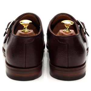 Alfred Sargent manufactured for J. Crew 'Ramsey' double buckle monk strap in burgundy grain calf. In excellent used condition, showing minor signs of wear.