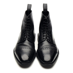 Loake 1880 'Hyde' cap toe derby boots in black calf. In excellent used condition, showing minor signs of wear.
