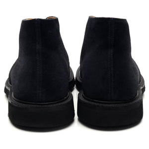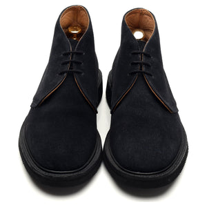 Tricker's 'Aldo' chukka boots in navy blue suede. In excellent used condition, showing minor signs of wear.