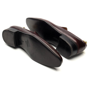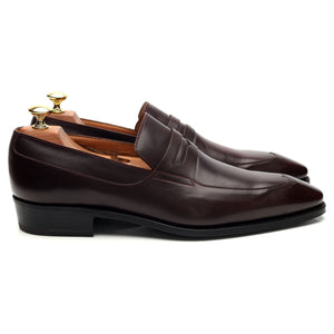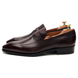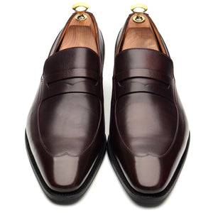 J.M. Weston penny loafer in burgundy calf.