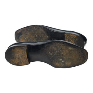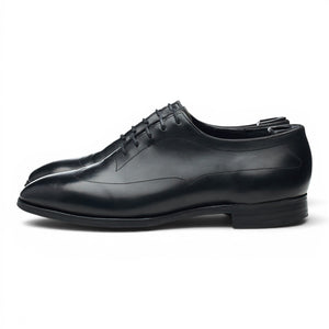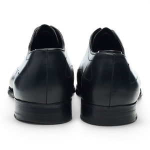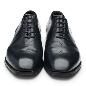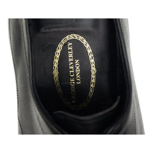 George Cleverley oxford, austerity brogues, in black calf. In very good used condition, with moderate signs of wear.