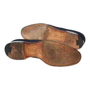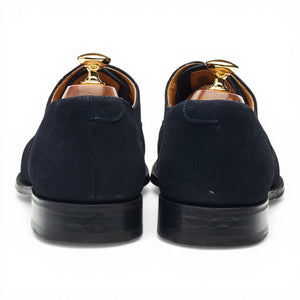 Church's 'Dubai' cap toe oxford in navy blue Superbuck suede. In excellent used condition, showing minor signs of wear.