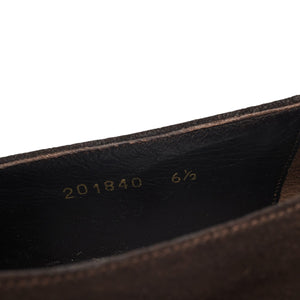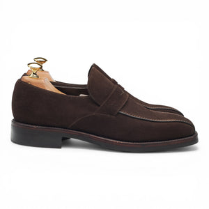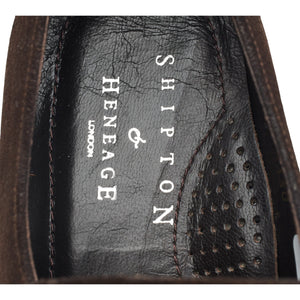 Shipton & Heneage 'Seville' penny loafers in dark brown suede. In excellent used condition.