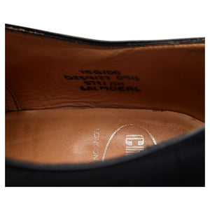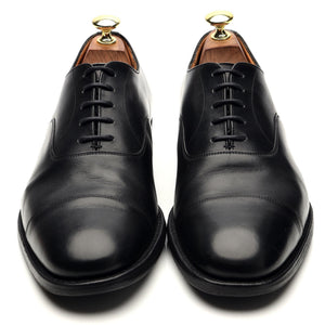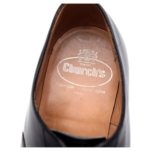 Church's 'Balmoral' cap toe oxford in black calf. In excellent used condition, showing minor signs of wear and some light creasing across the vamps.