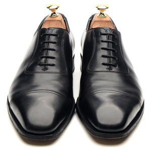 Edward Green cap toe oxford in black calf. In excellent used condition with minor signs of wear.