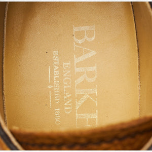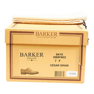 Barker 'Skye' plain toe derby in 'cedar' tan brown grain calf. In excellent used condition, showing minor signs of wear.