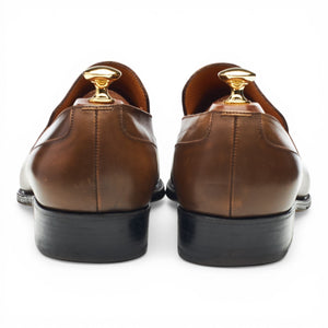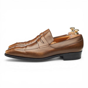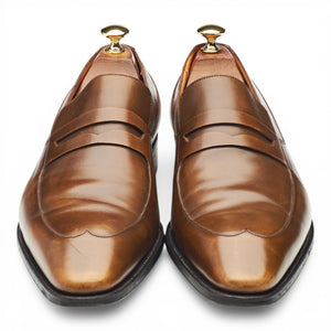 J.M. Weston '436' penny loafers in brown burnished calf. In excellent used condition, showing minor signs of wear.