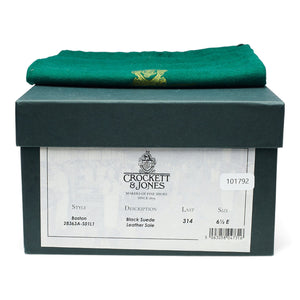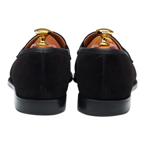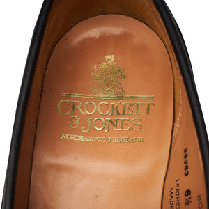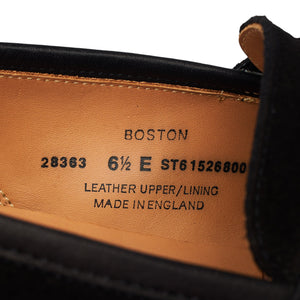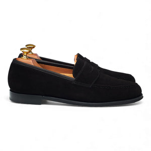 Crockett & Jones 'Boston' penny loafer in black suede. In excellent used condition, showing minor signs of wear.