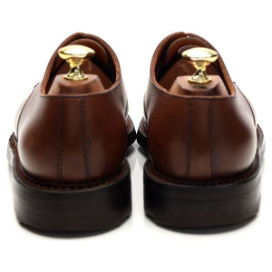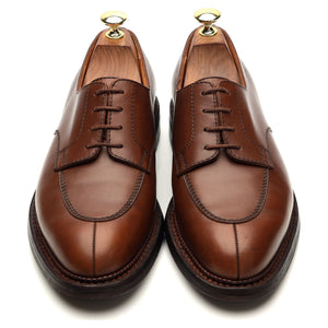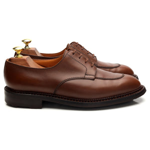 J.M. Weston 'Half-Hunt' apron front split toe derby in brown calf. In excellent used condition, showing minor signs of wear.