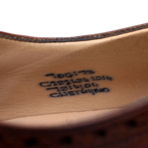 Church's 'Chetwynd' oxford brogue in tan brown antique calf. In excellent used condition, showing minor signs of wear and light creasing across the vamps.