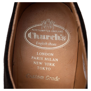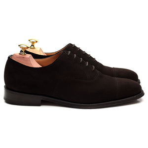 Church's 'Consul' cap toe oxford in dark brown suede. In excellent used condition.