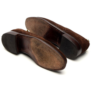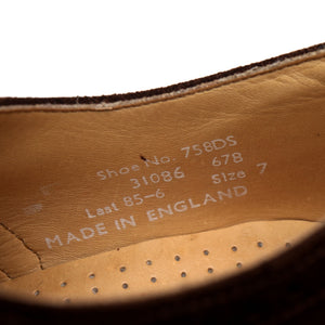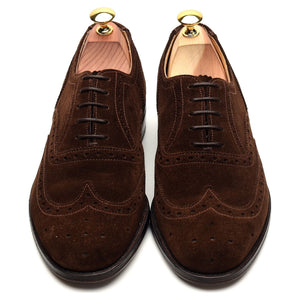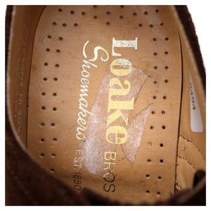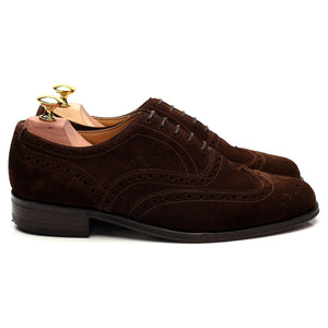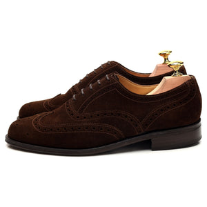 Loake '758' brogues in dark brown suede. In excellent used condition, with minor signs of wear and minor marks to the uppers.