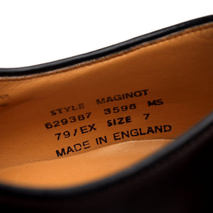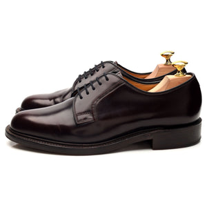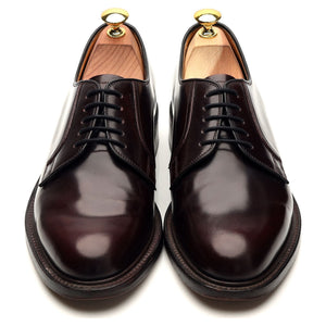 Loake manufactured for Jones Bootmaker 'Maginot' plain toe derby in burgundy polished calf. In excellent used condition, showing minor signs of wear.